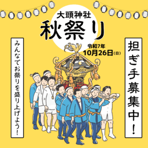 【活動報告】 ・10月26日(日) 秋祭り(お神輿)今年は、秋の例大祭に6区からは、大人神輿と女神輿が登場し元気一杯地域を練り歩き五穀豊穣そして力強い地域づくりへと大頭神社への奉納神事が行われました。大人神輿では、宮島工 […]